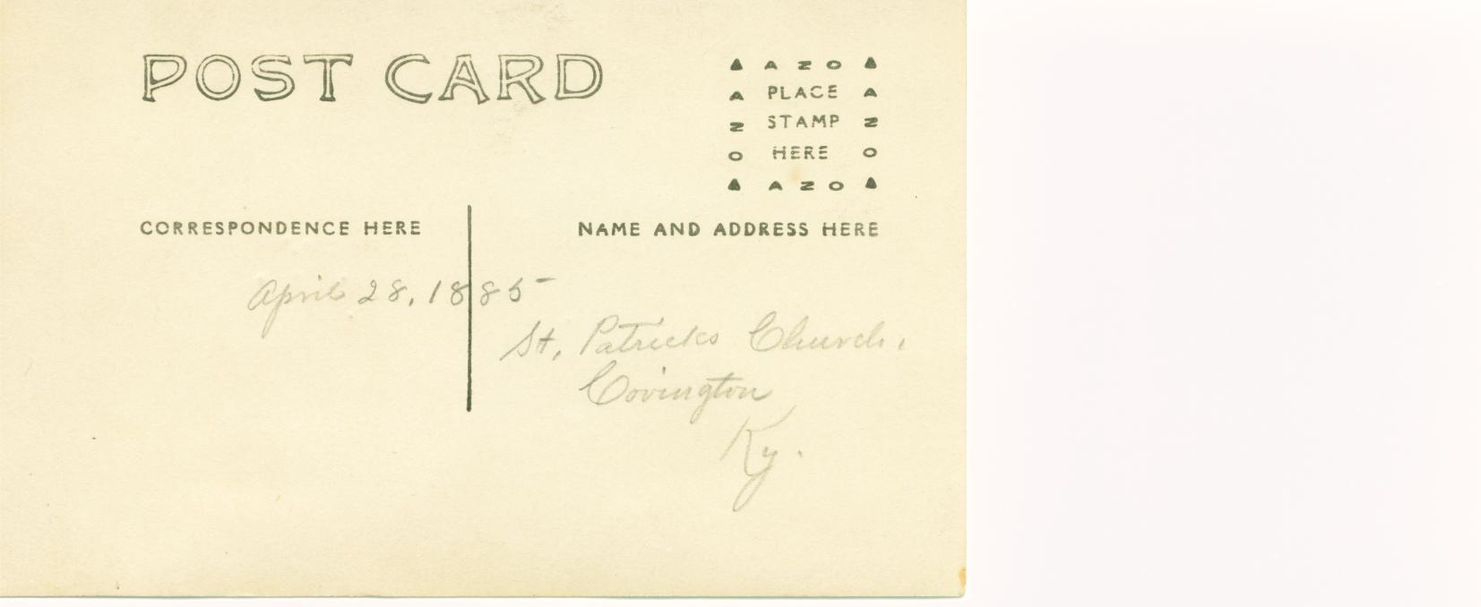 St. Patricks Church - back of the picture above. The date is the Wedding date of Mary's husband's grandparents at St. Patricks. |