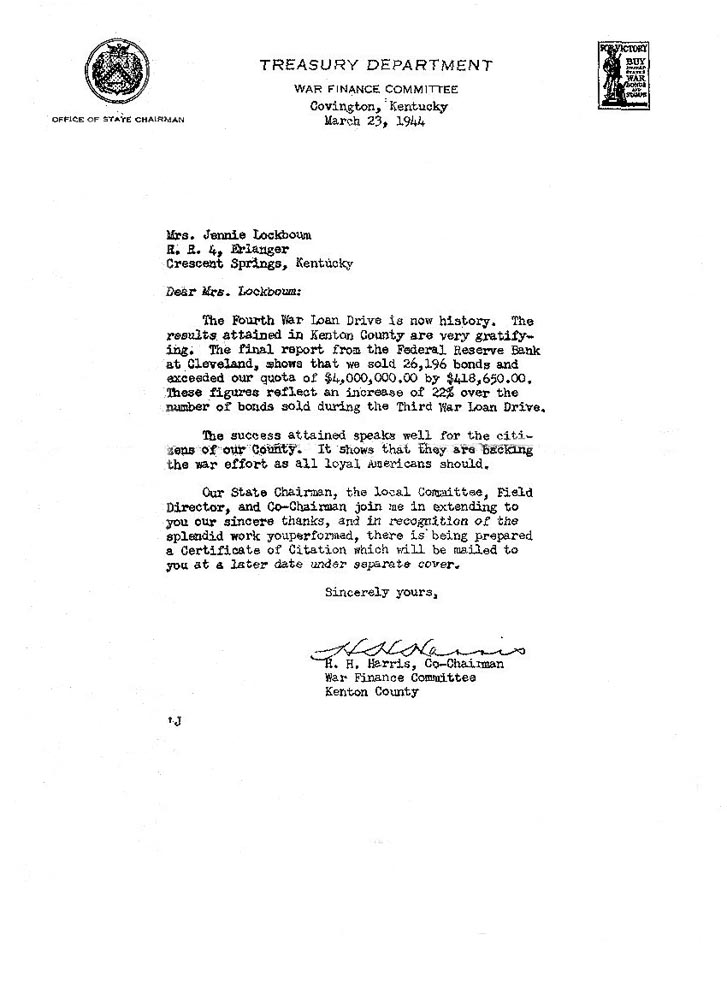 Results of the Fourth War Loan Drive--WW2--1944--Kenton
