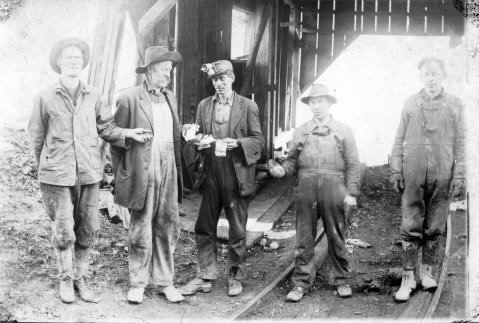 The second man from the left has been identified by his grand-daughter (Hazel Gibson Farmer) his name is Finley Gibson. Thank you Hazel for helping us update the photo.
