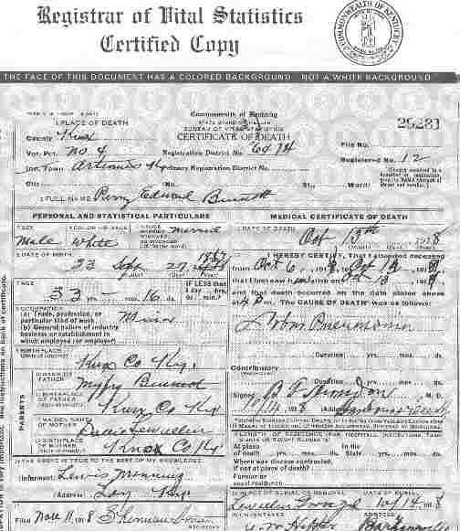 Death Certificate donated by Ken Bennett