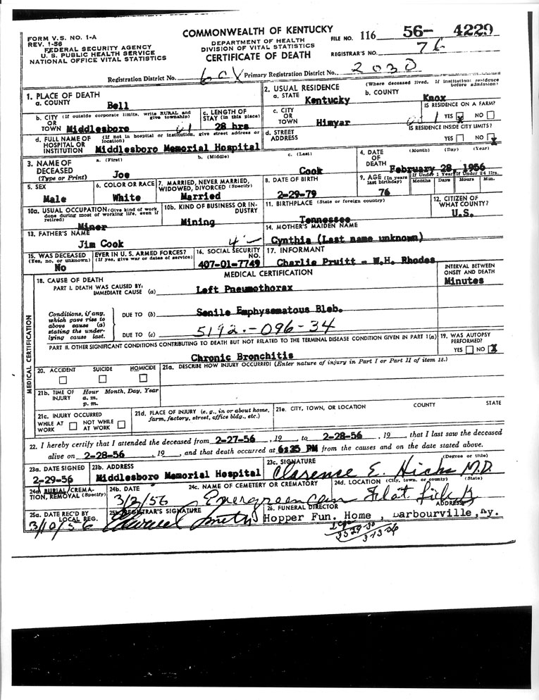 Death Certificate Donated by Doyle Mills