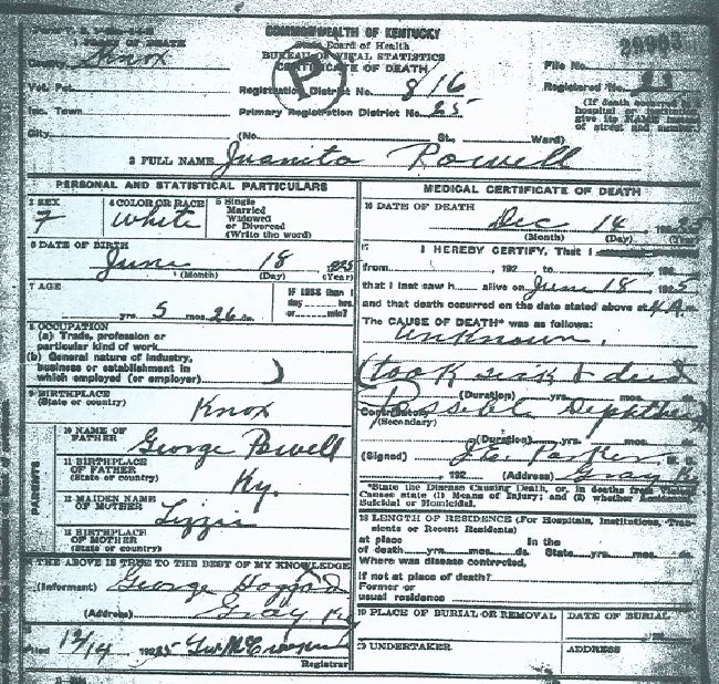 This death certificate was graciously donated by Wanda O'Bryan