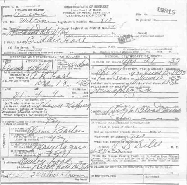 Death Certificate Donated by Faye Puckett