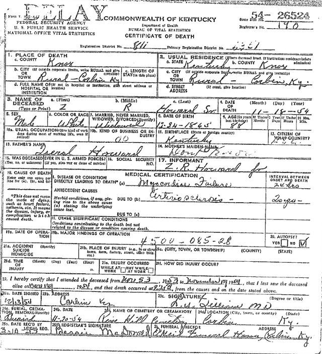 Death Certificate Donated by Elsie Gambrel