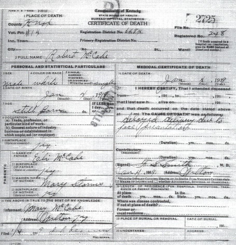 Death Certificate Donated by Michelle Cook