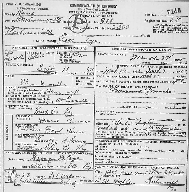 | TYE | ROSE | 1925 | 3 | 22 | 83 | 7146 |