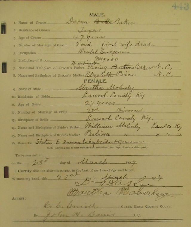 Marriage Records donated by Terry McDaniel and Cassy Sommers