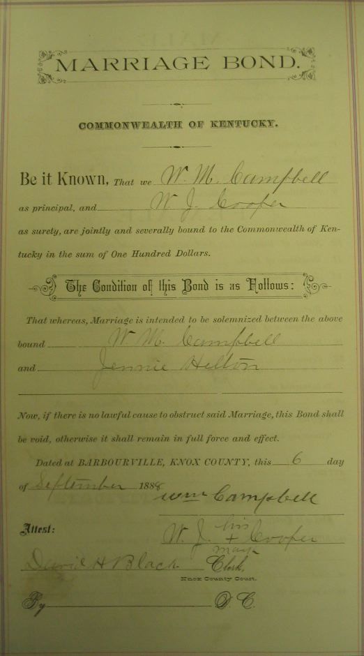 Marriage record donated by Barb Rice and Cassy Sommers