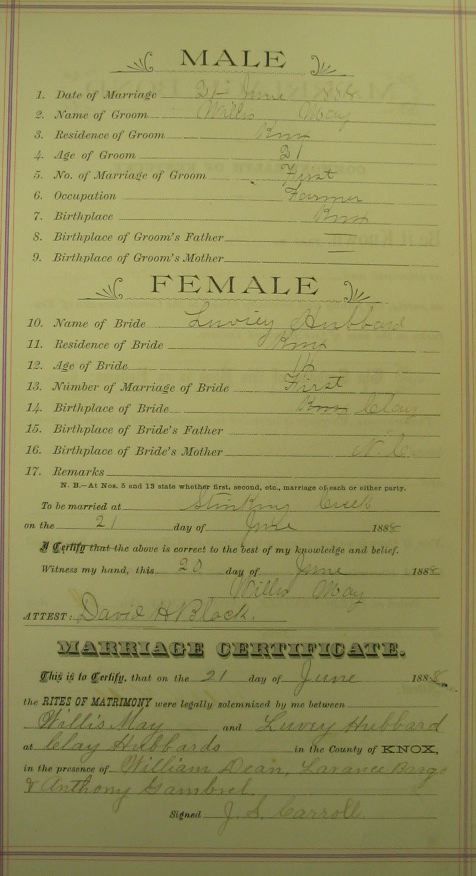 Marriage record donated by Barb Rice and Cassy Sommers