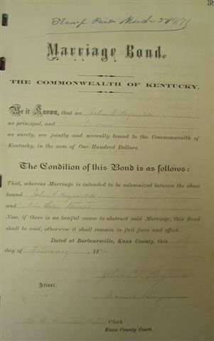 Marriage record donated by Pat Hobson and Cassy Sommers