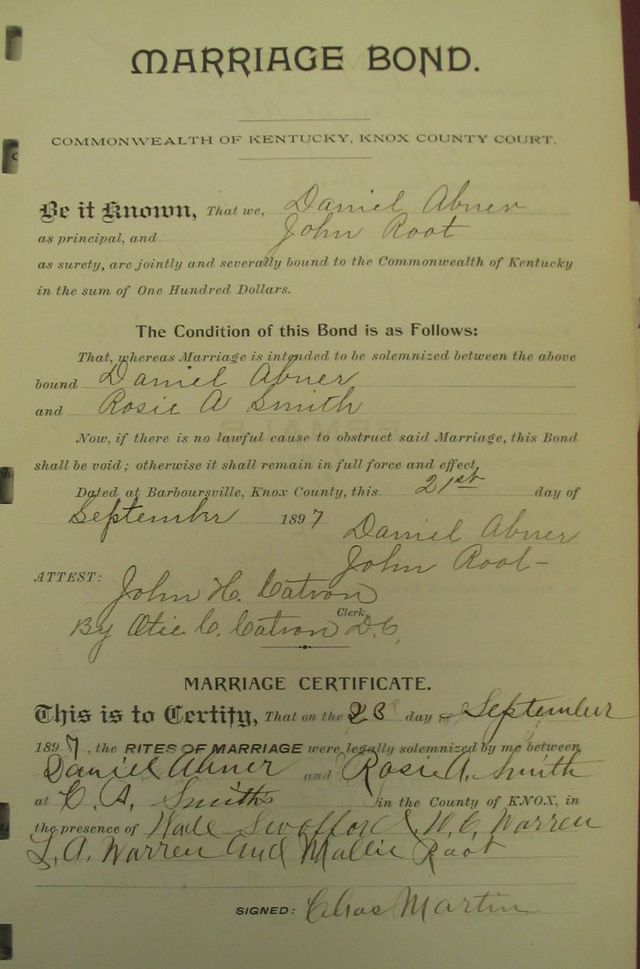 Marriage record donated by Terry McDaniel and Cassy Sommers