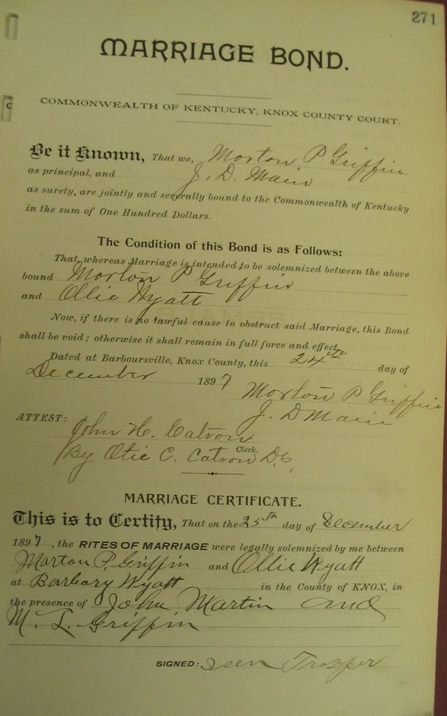 Marriage record donated by Vickie Lee and Cassy Sommers
