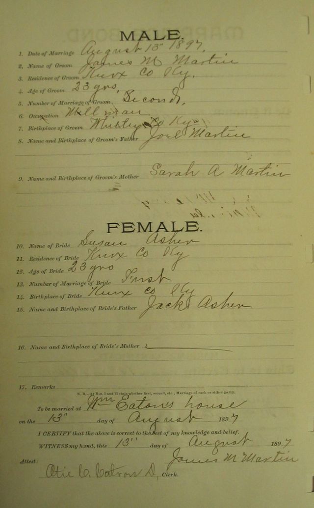 Marriage record donated by Gloria Skeens and Cassy Sommers