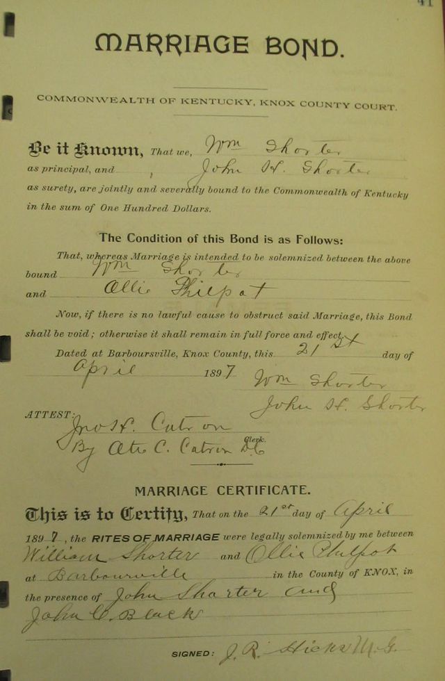 Marriage record donated by Vickie Lee and Cassy Sommers