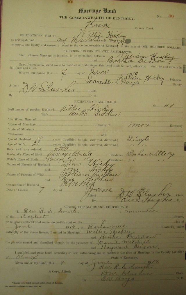 Marriage record donated by Gloria Skeens and Cassy Sommers