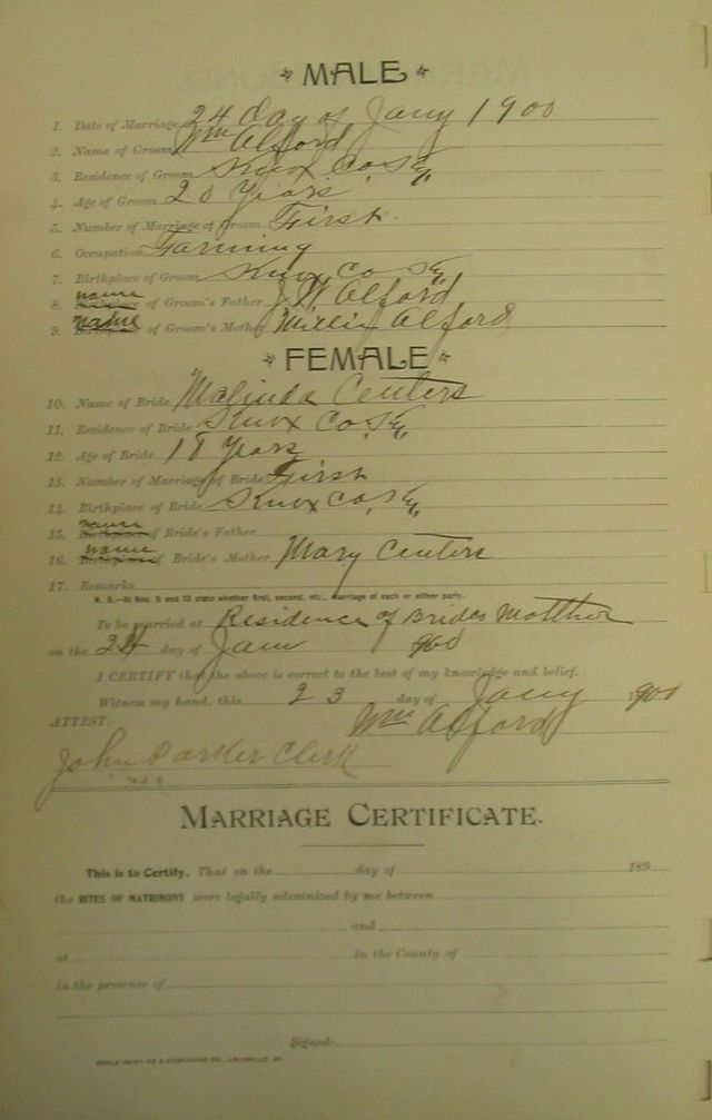 Marriage Records donated by Pati Sears-Burnett and Cassy Sommers
