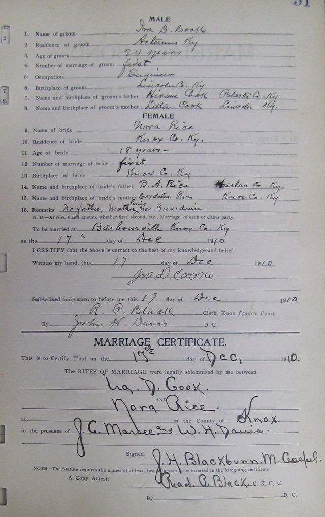 Marriage Records donated by Pati Sears-Burnett and Cassy Sommers