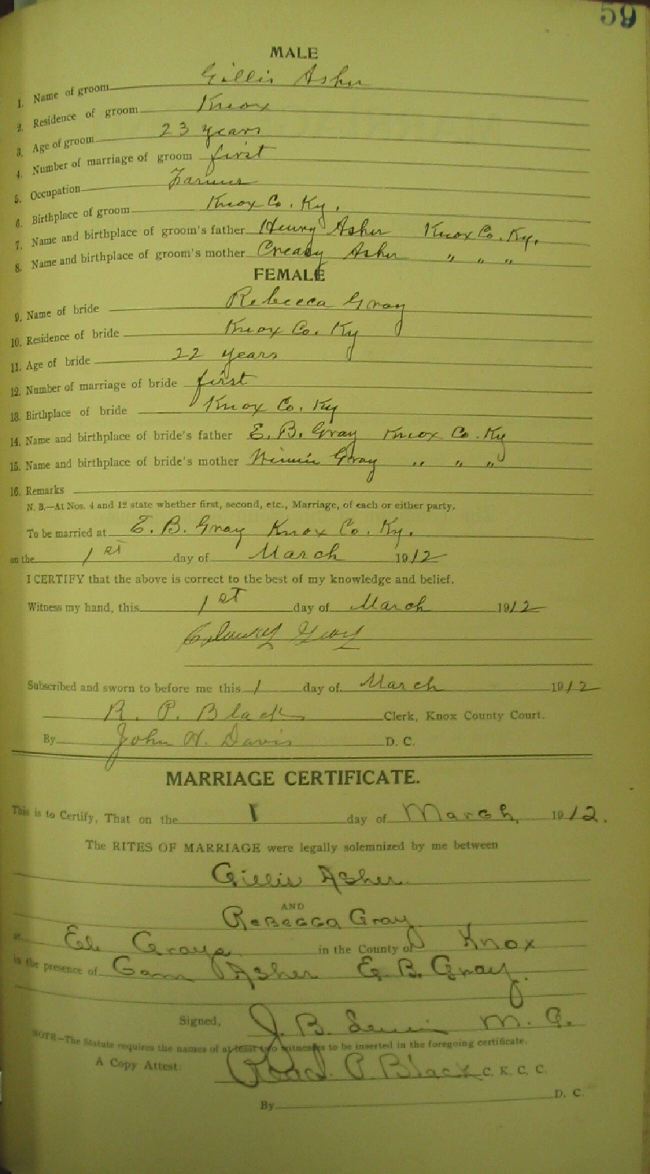 Marriage record donated by Cassy Sommers