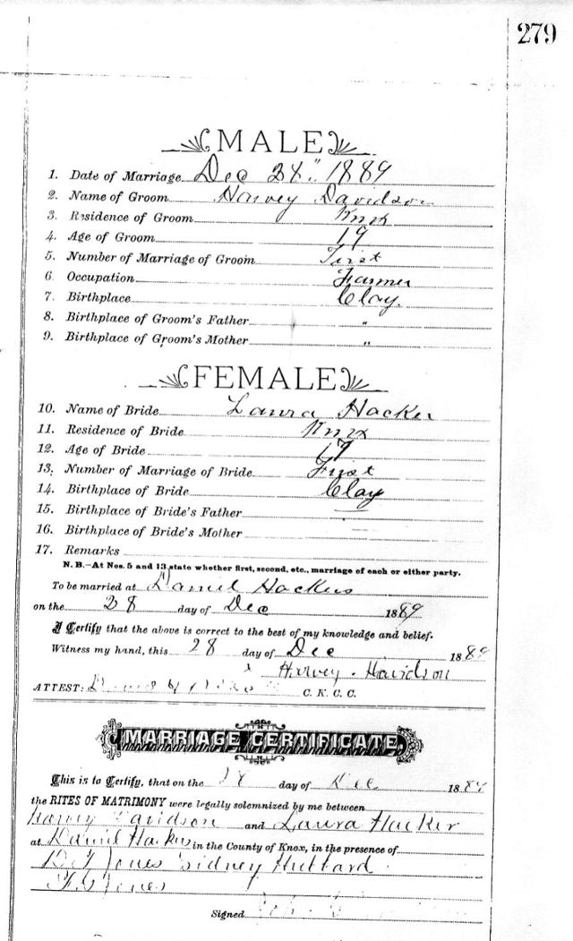Marriage record donated by Bill and Gina Smith