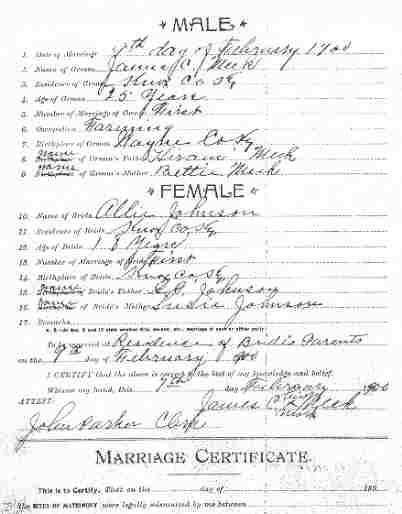 Marriage record donated by Ken & Carolyn Bennett