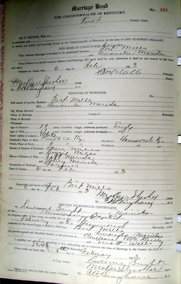 Marriage record donated by Carolyn Gambrel