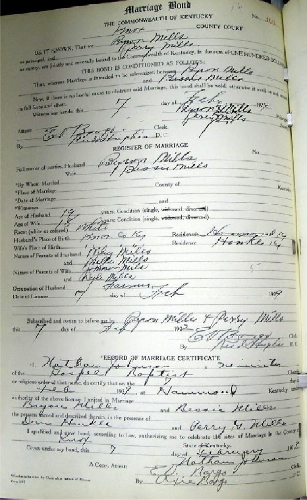 Marriage record donated by Carolyn Gambrel