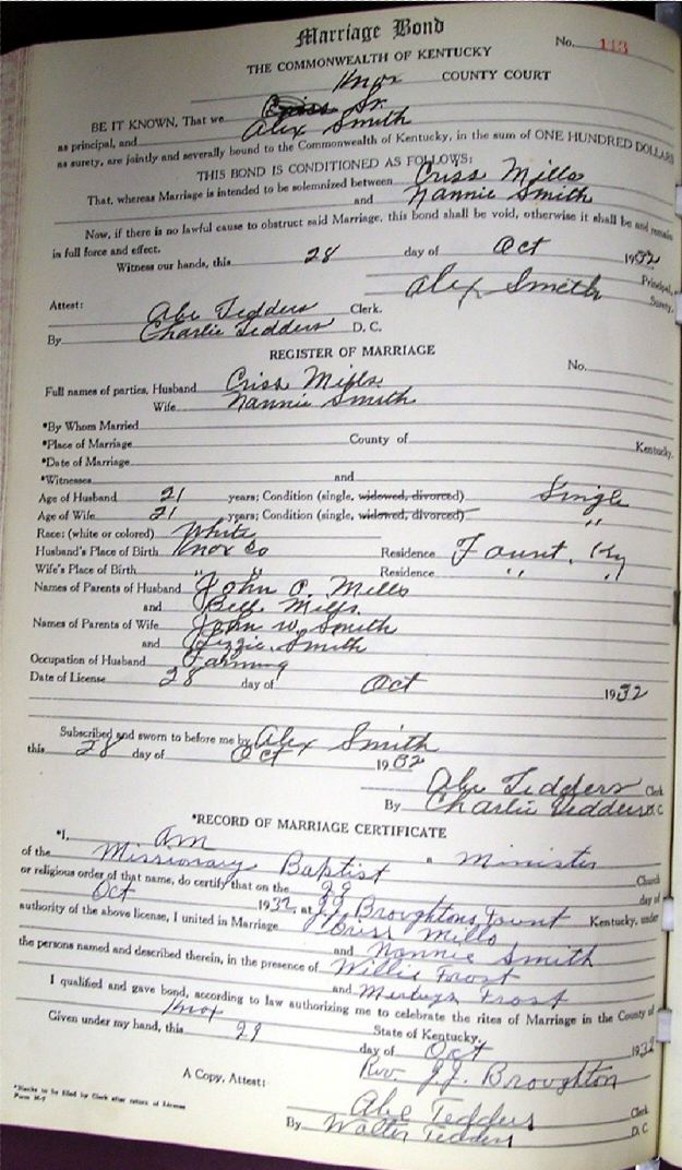 Marriage record donated by Carolyn Gambrel