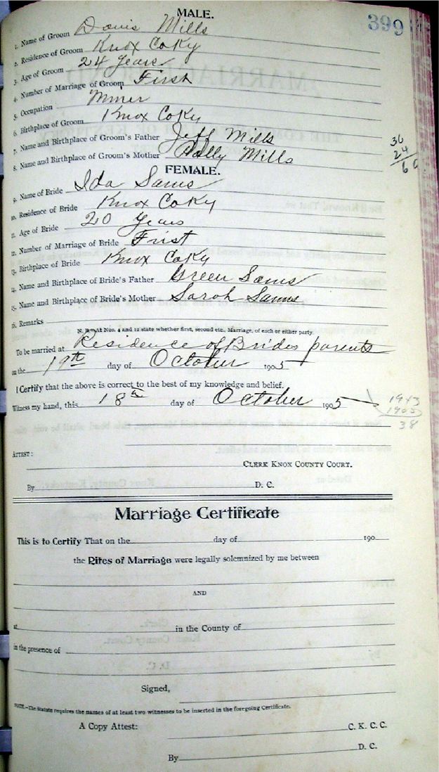 Marriage record donated by Carolyn Gambrel