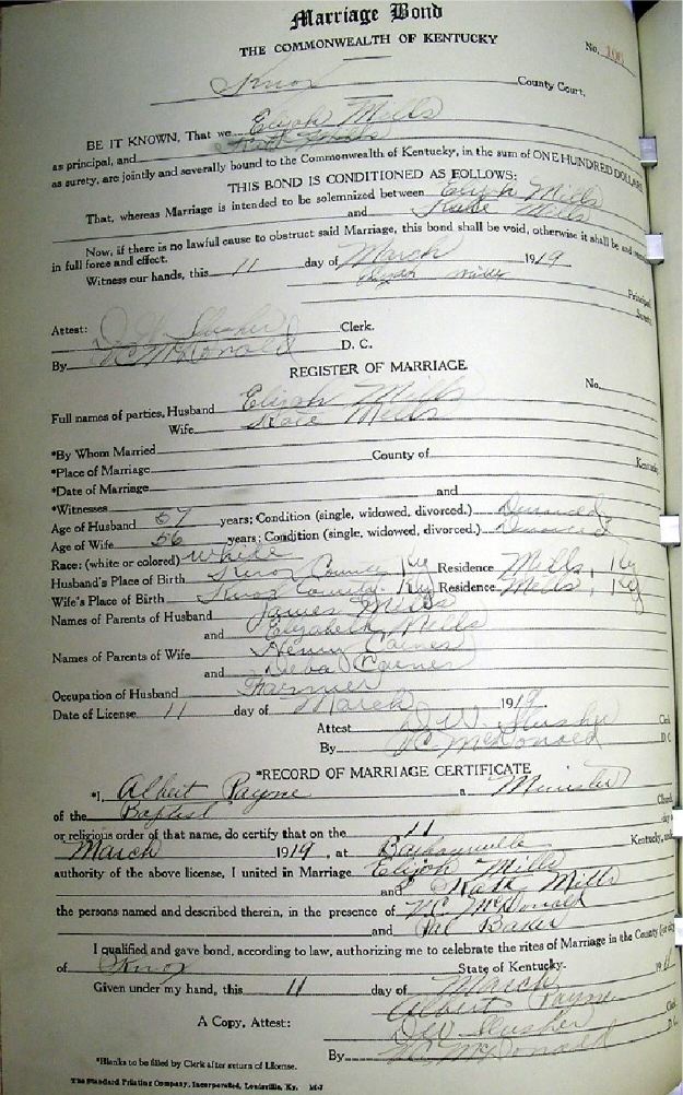 Marriage record donated by Carolyn Gambrel