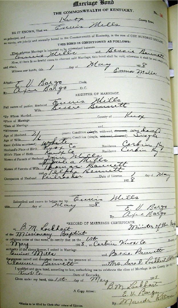 Marriage record donated by Carolyn Gambrel