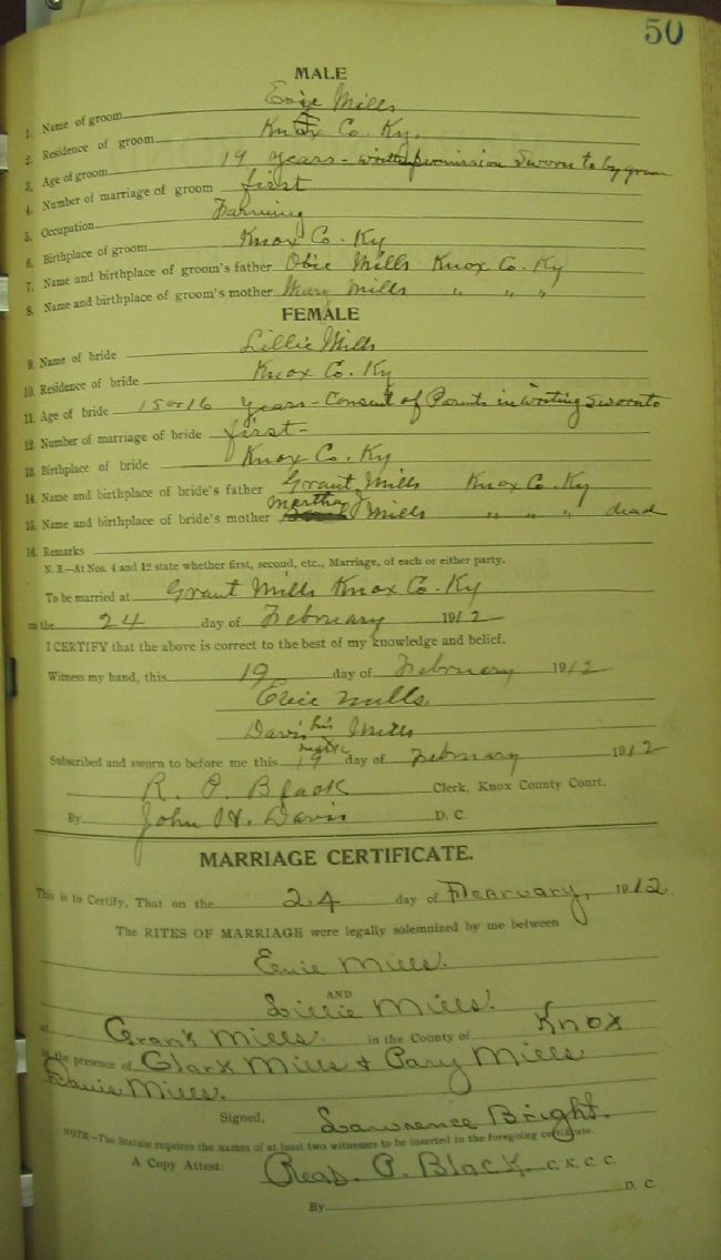 Marriage record donated by Cassy Sommers