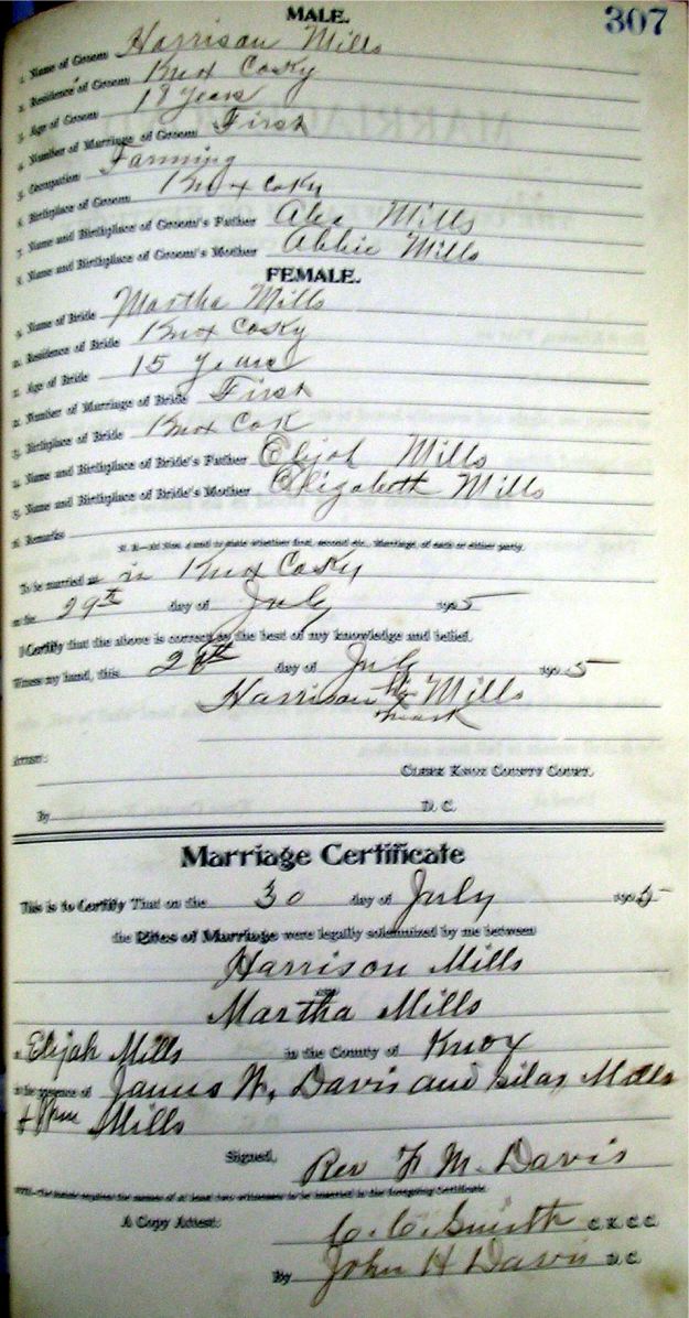 Marriage record donated by Carolyn Gambrel