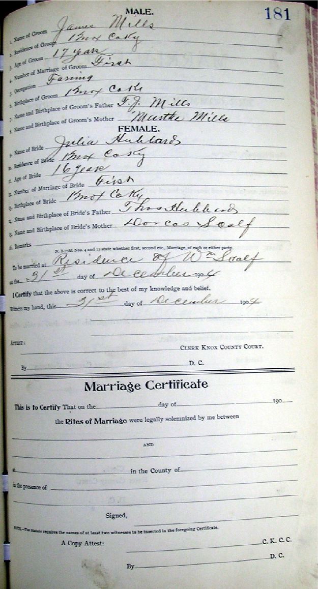 Marriage record donated by Carolyn Gambrel