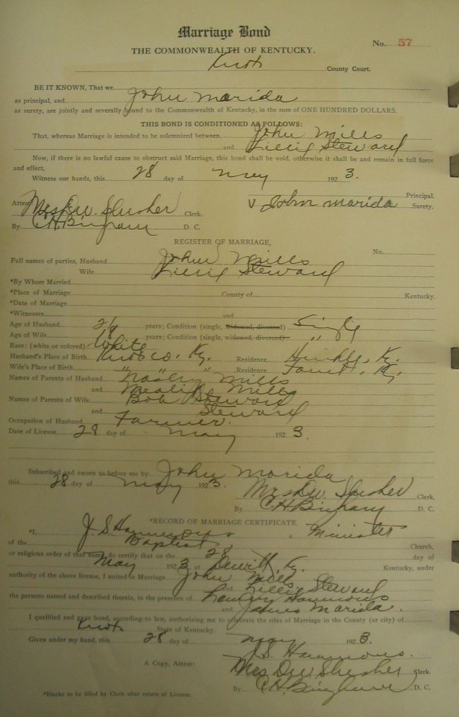 Marriage record donated by Cassy Sommers and Patricia Hobson