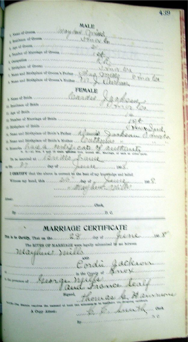 Marriage record donated by Carolyn Gambrel