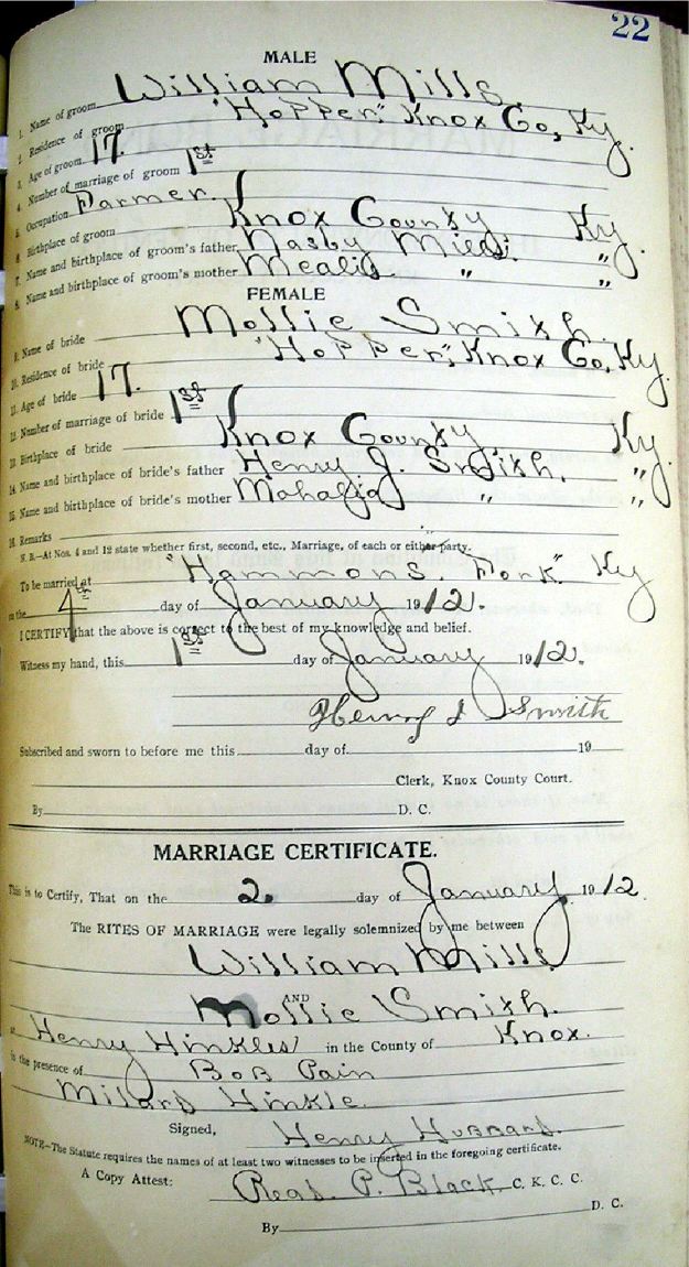 Marriage record donated by Carolyn Gambrel
