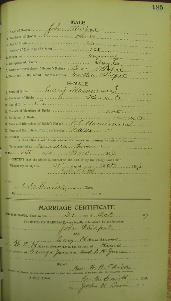 Marriage record donated by Cassy Sommers