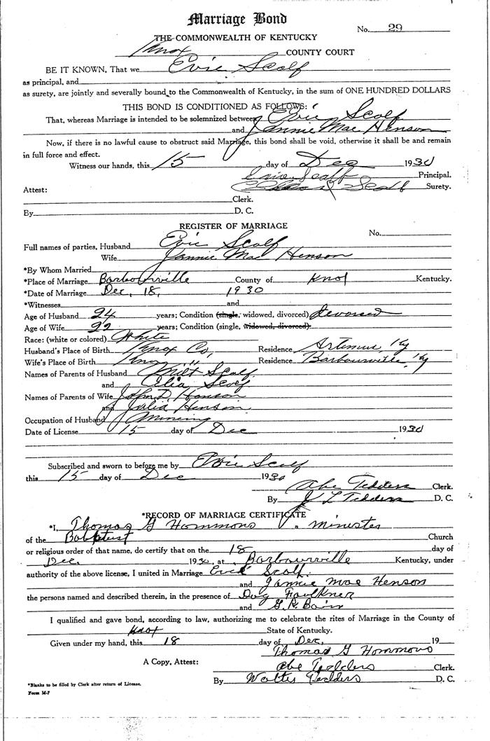Marriage record donated by Ona Scalf