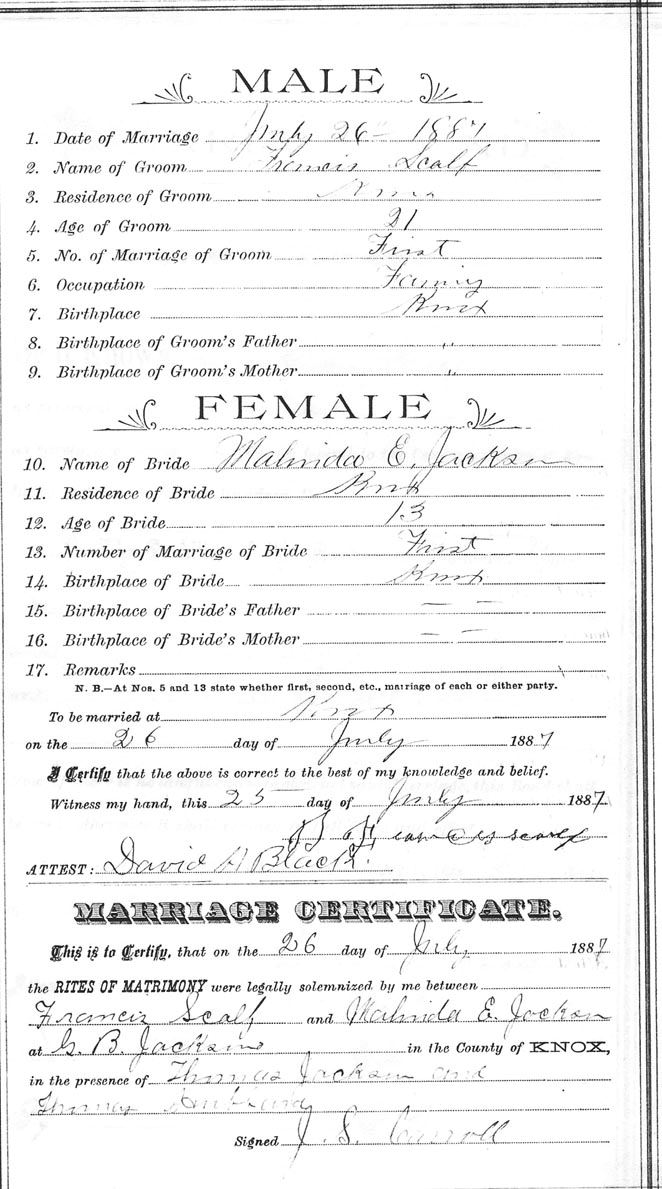 Marriage record donated by Ona Scalf