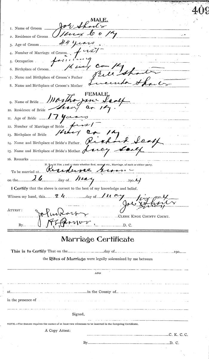 Marriage record donated by Ona Scalf