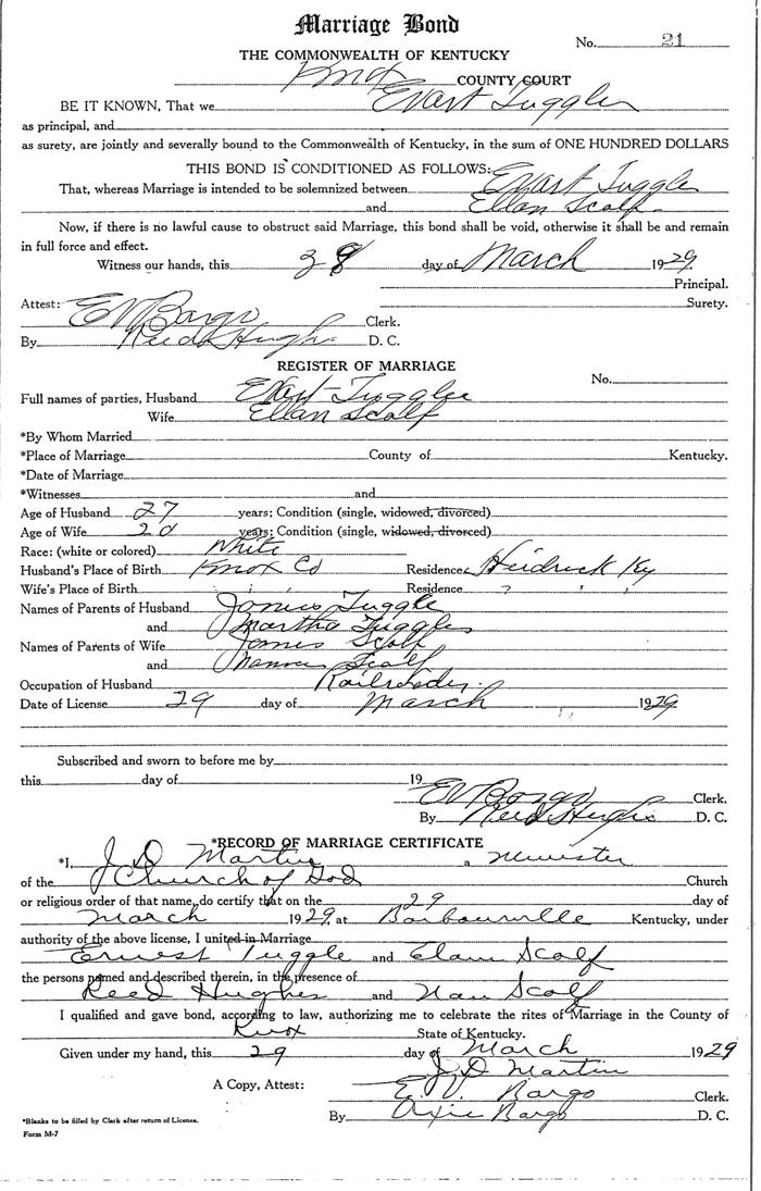 Marriage record donated by Ona Scalf