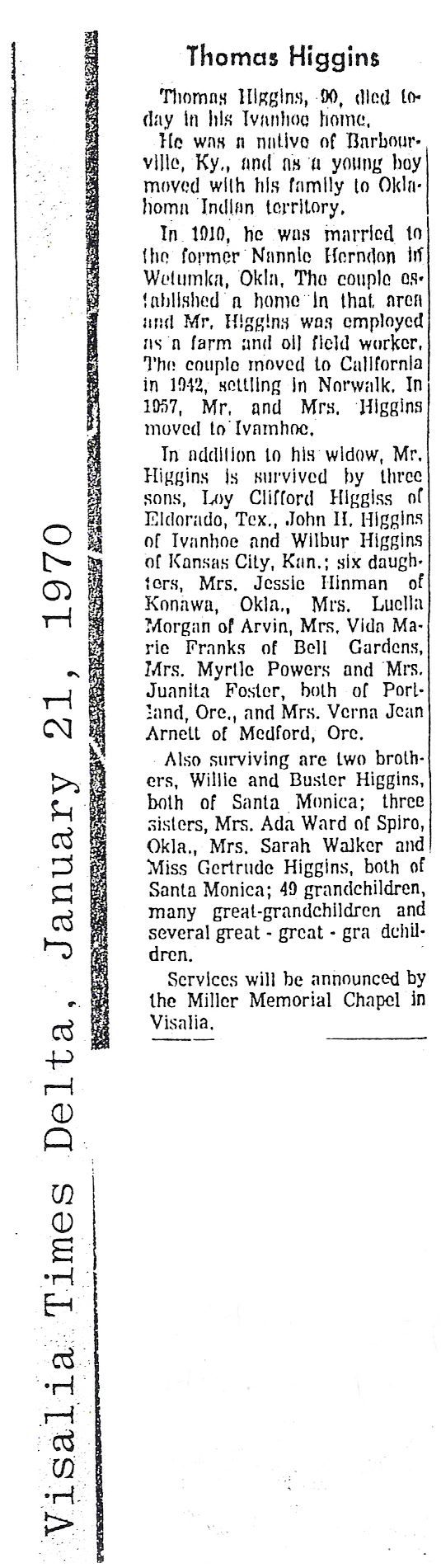 Obituaries donated by Terri McDaniel