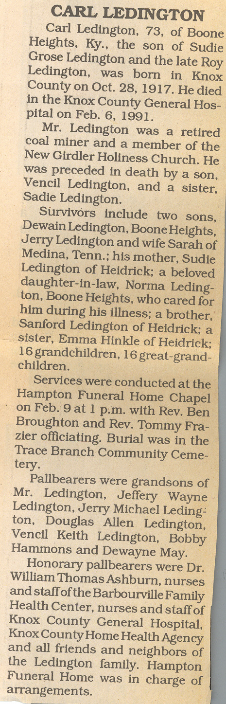Obituaries donated by Betty Jordan