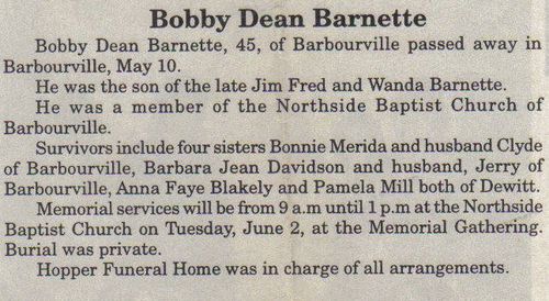 This obituary was originally published in the Barbourville Mountain Advocate.