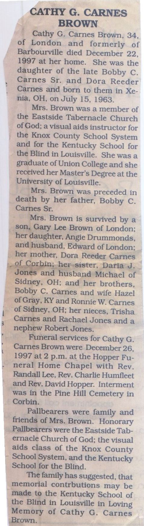 Obituary donated by Lori Gibson