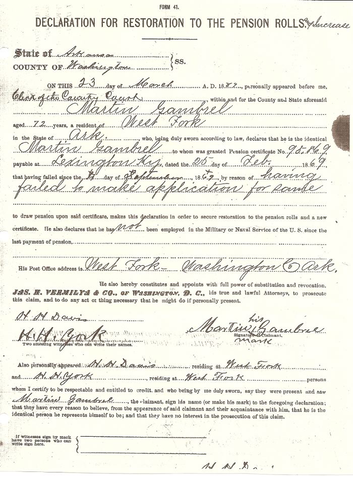 Martin Gambrel Partial Pension File donated by Elsie Gambrel Underwood