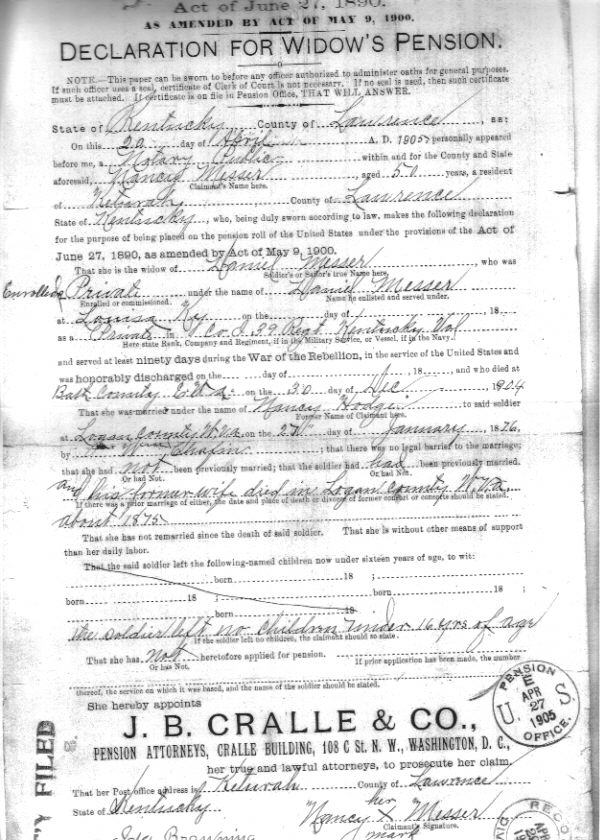 Nancy Hodge Messer Partial Pension File donated by Randy Jackson