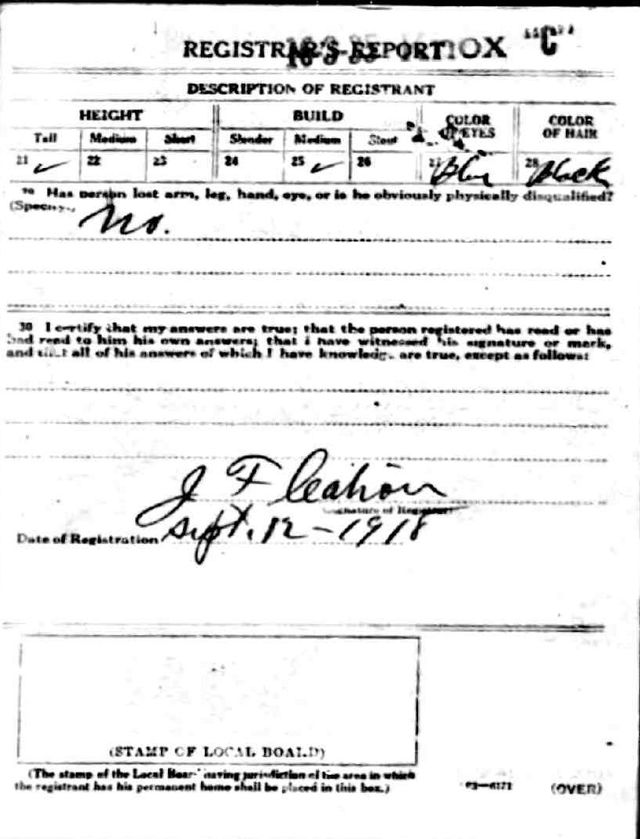 World War I Draft Card donated by Patti Partin