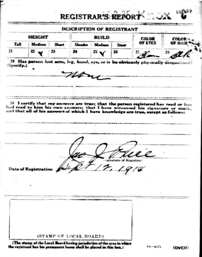 World Ward Draft Card donated by Dee Smith