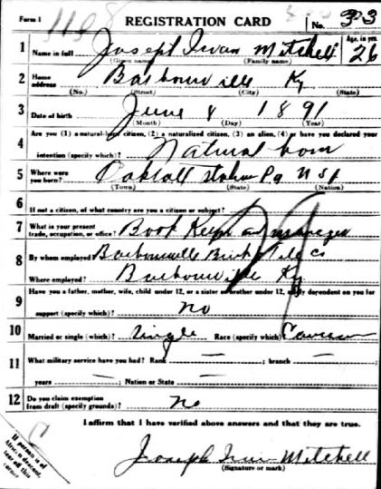 World Ward Draft Card donated by Patti Partin